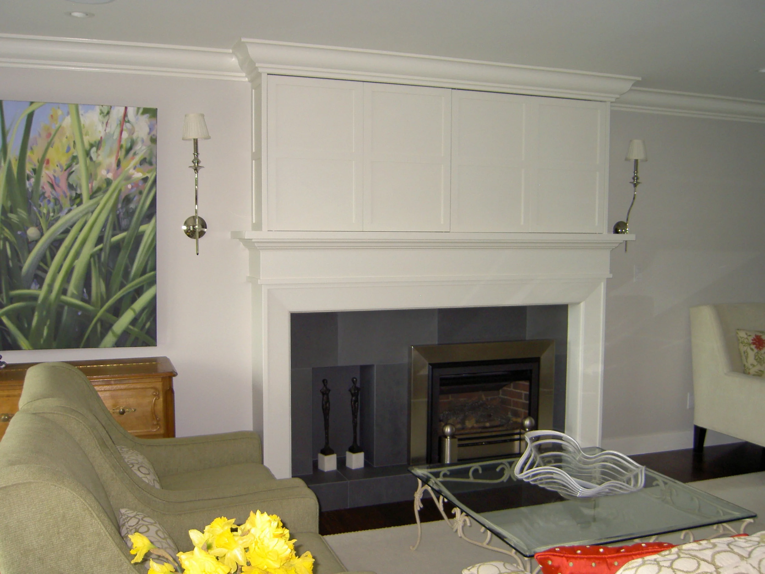 In addition, a lot of my work involved actual interior design rather than decorating. There is a big difference between the two. Decorating involves furniture selection or recovery of existing pieces, wall paint colour selection or wallpaper and accessorizing. Oh and yes, window treatments. Interior design has to do with space planning, making drawings, selection of interior finishes from floor coverings to ceiling treatments and everything in between. From designing fireplaces, millwork, staircases and the like to kitchen and bathroom renovations. It involves electrical, plumbing and HVAC work. It requires an understanding of all sorts of architectural elements. It is much more involved.